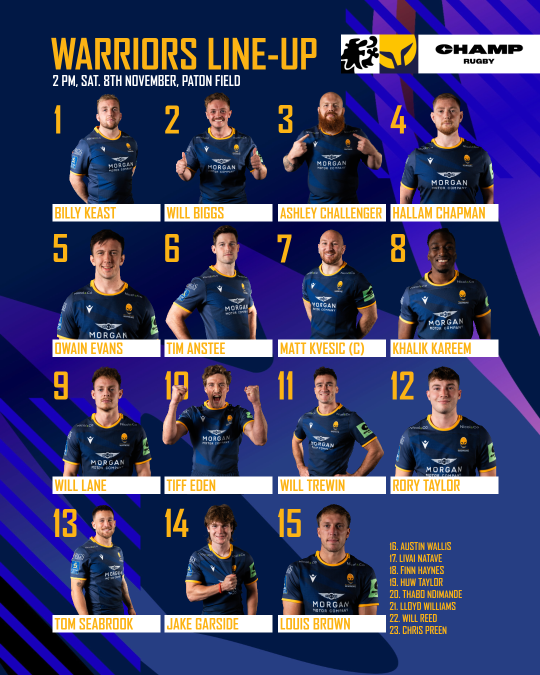 Amongst the replacements, prop Finn Haynes is set for his Champ Rugby debut, where he’s joined by Austin Wallis, Livai Natave, Huw Taylor, Thabo Ndimande, Lloyd Williams, Will Reed, and last week’s debutant Chris Preen to round off the 23.